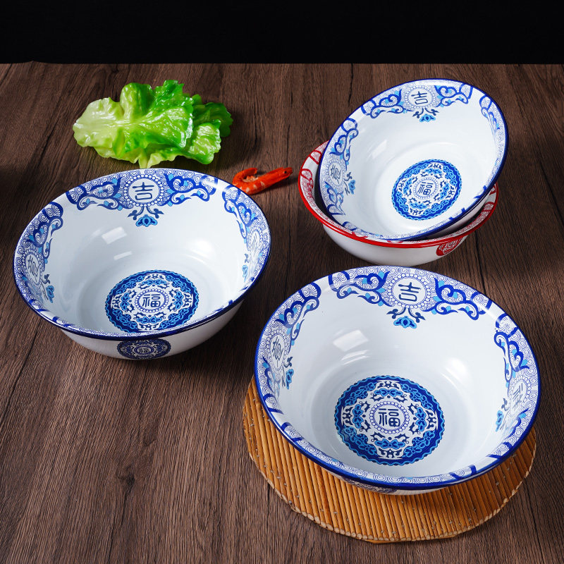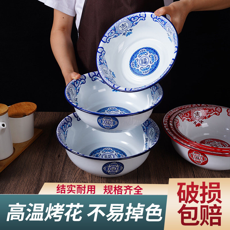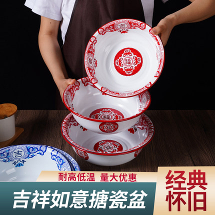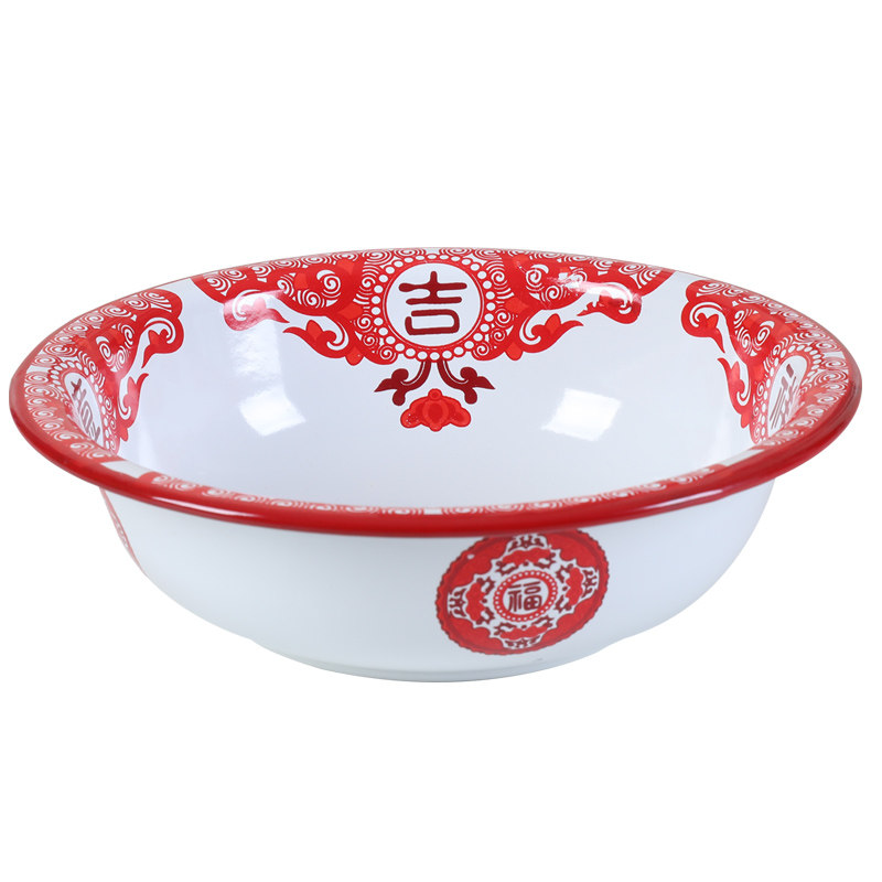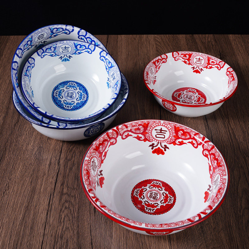 搪瓷盆老式搪瓷碗加厚珐琅汤碗饭碗红吉祥盆冒菜碗油碟碗鸭肠盆