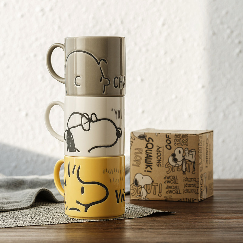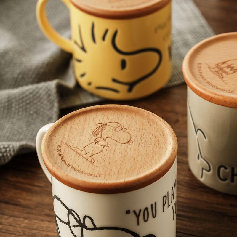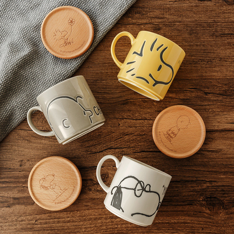 日本进口史努比PEANUTS马克杯陶瓷杯 带盖水杯原装进口杯子礼盒装