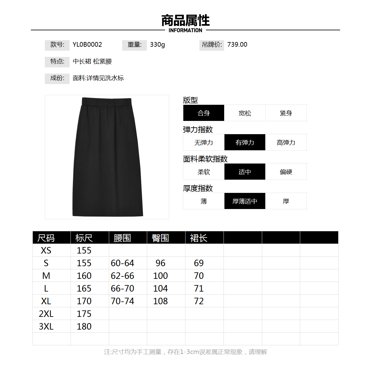 2025年秋装Outlets专柜 高端YL系列气质高级感中长裙松紧腰半身裙