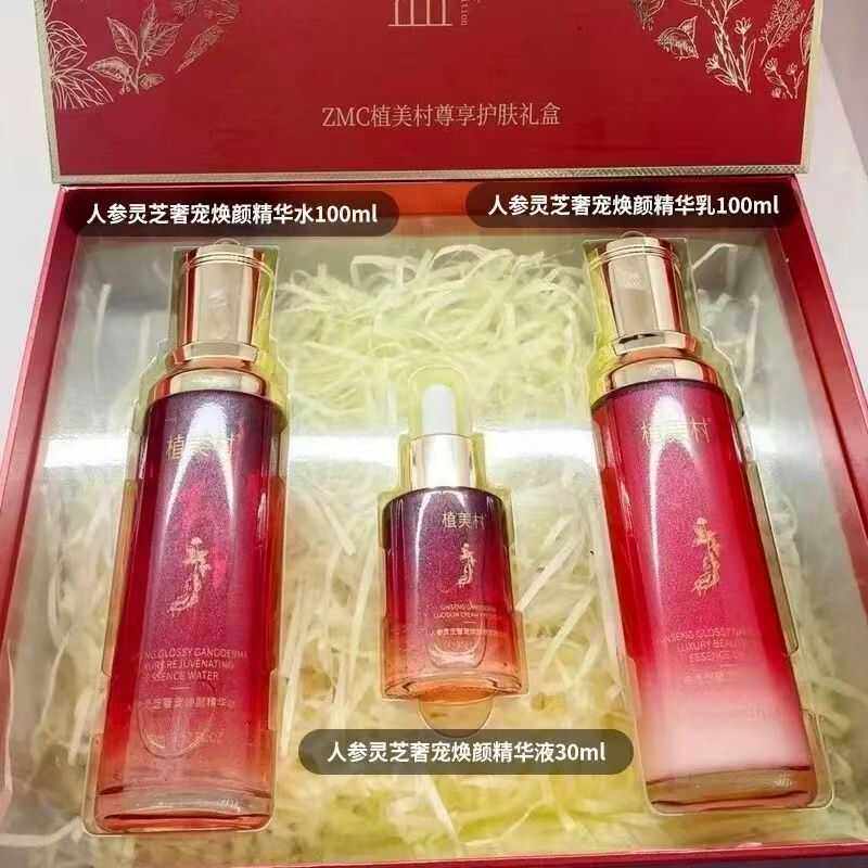 植美村灵芝套装补水保湿皙白礼盒淡化斑化暗黑5件套送人参3件套