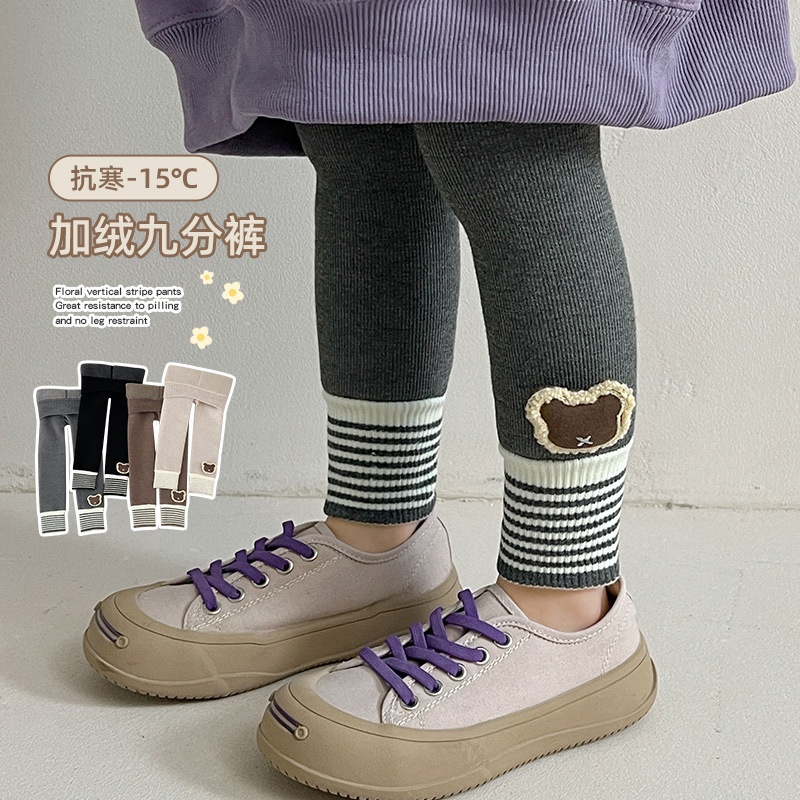 女宝宝打底裤加绒加厚秋冬季儿童裤子外穿一体绒弹力修身女童