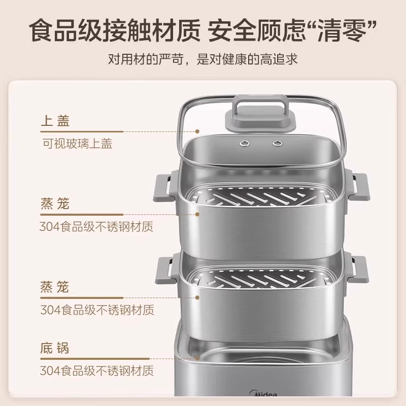 美的不锈钢电蒸锅多功能家用三层蒸煮一体早餐机自动断电2025新款