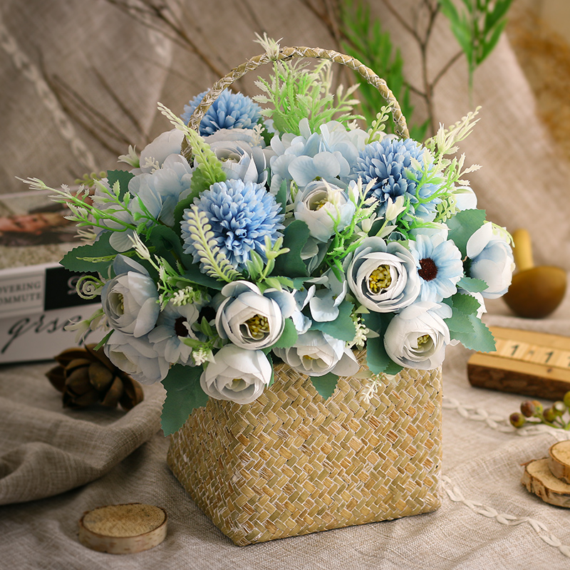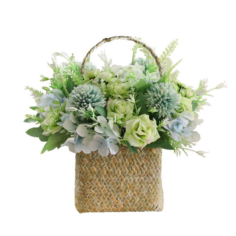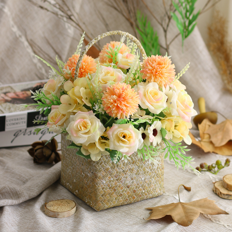 草编花盆花篮藤编手提编织竹编假花装饰花仿真花餐桌摆花客厅摆设