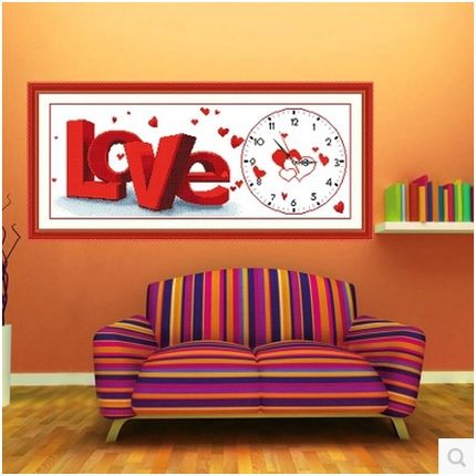 精准印花十字绣新款客厅大幅卧室 蒙娜丽莎十字绣love爱钟表系列