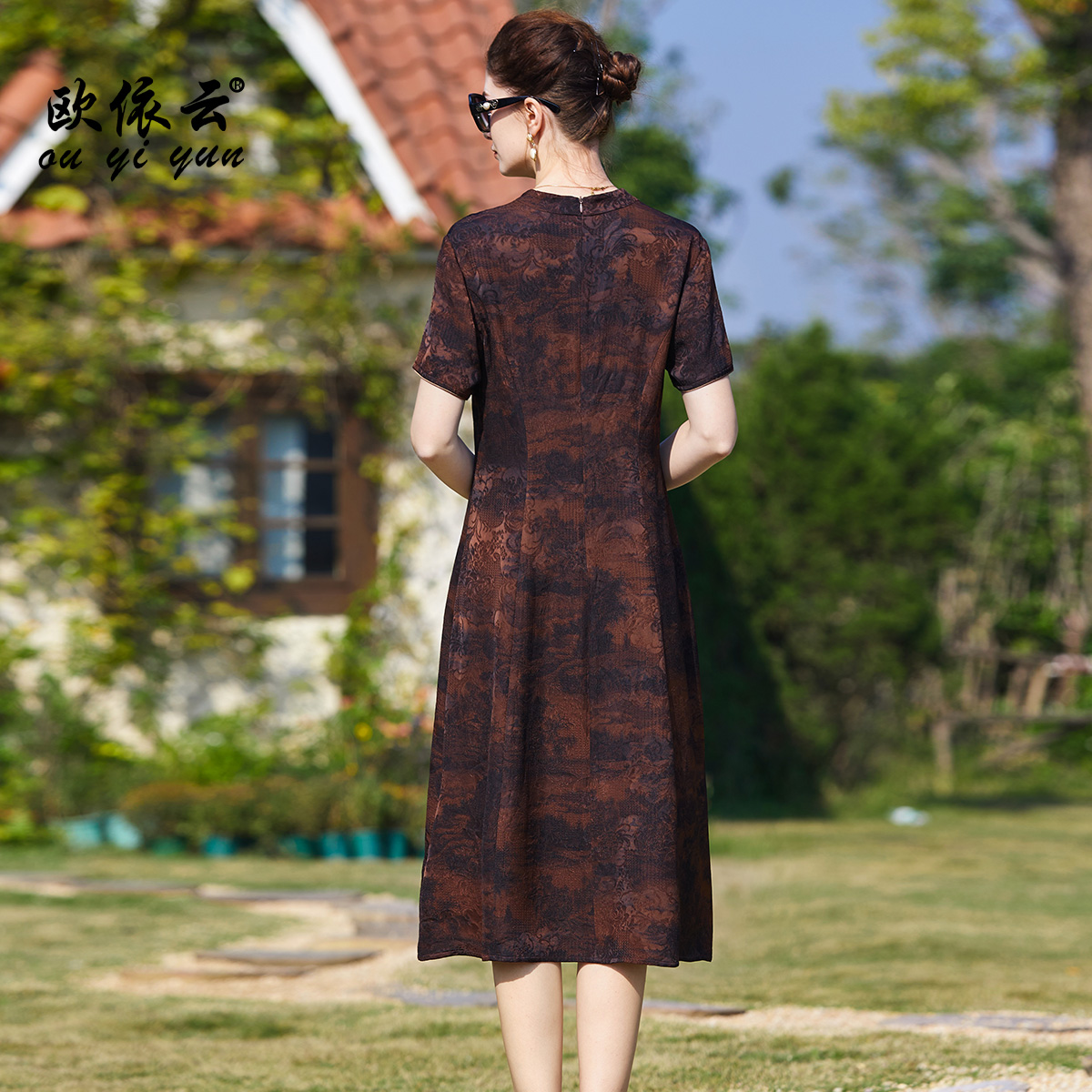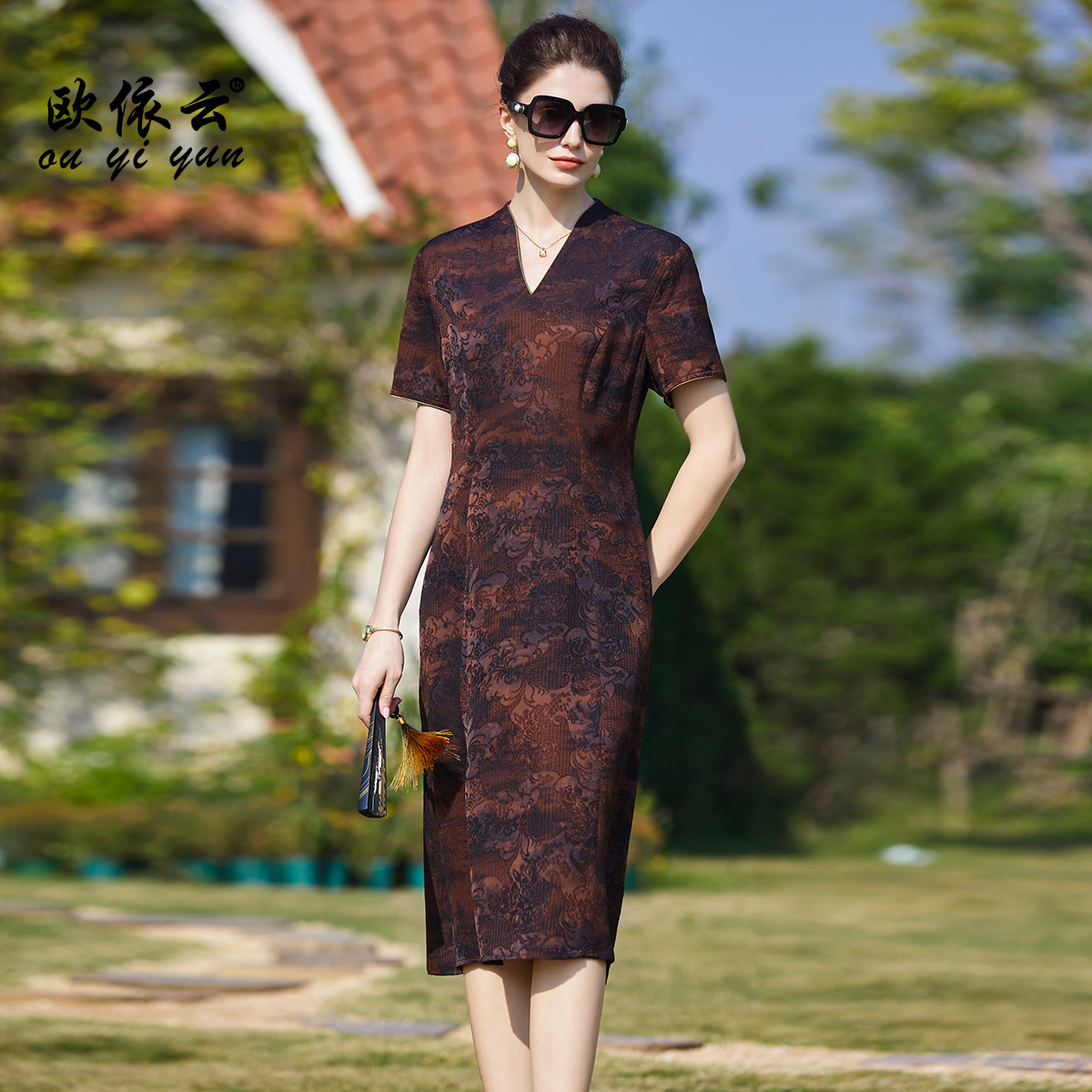 欧依云2025夏装旗袍改良修身连衣裙显瘦洋气妈妈轻奢复古气质裙子
