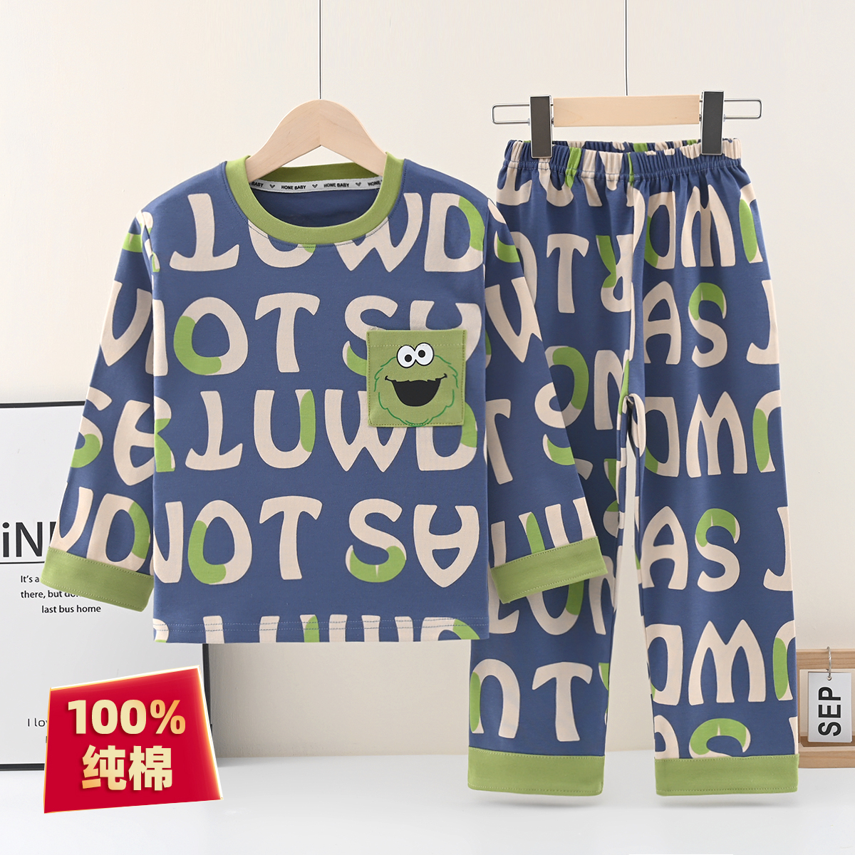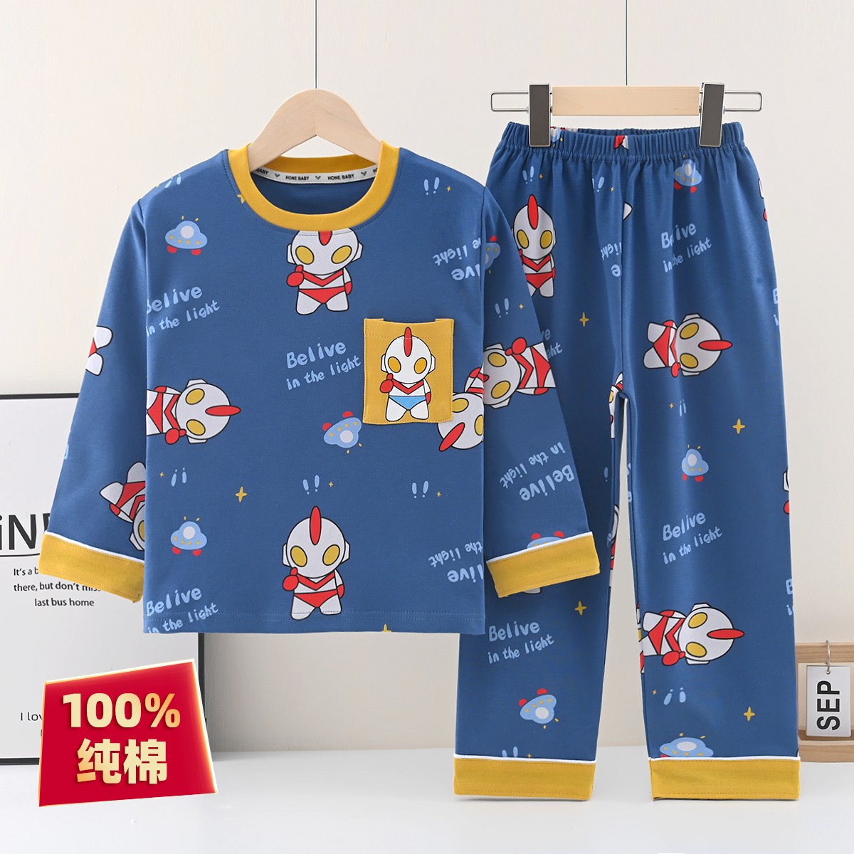 套头a类儿童睡衣男女童纯棉春秋薄款套装卡通空调服可爱家居服