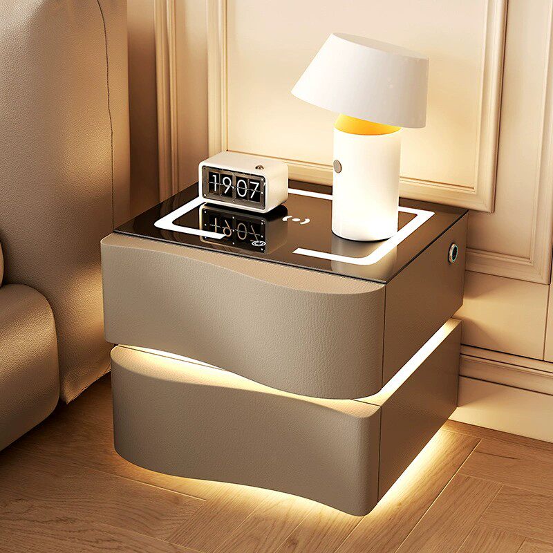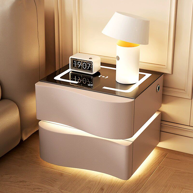 智能床头柜创意家用简约现代多功能卧室无线充电轻奢高级感带灯光