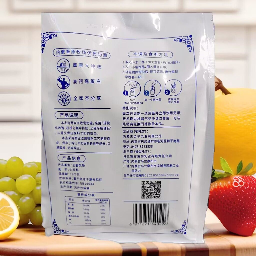 西蒙纯羊奶粉350克袋装内含14小袋成牛奶粉内蒙古特产包邮
