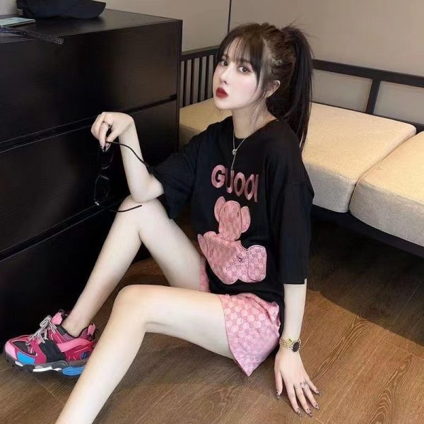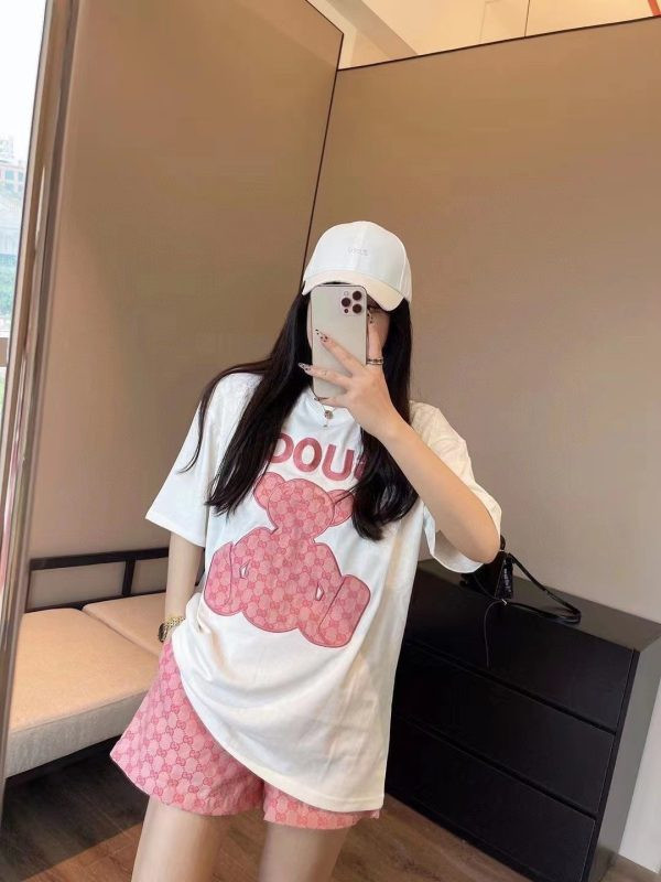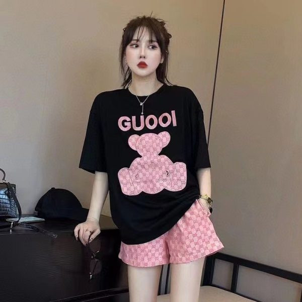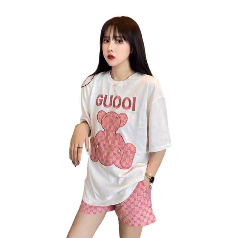 休闲运动服套装女2025夏季时髦洋气时尚女装小熊短袖+短裤两件套