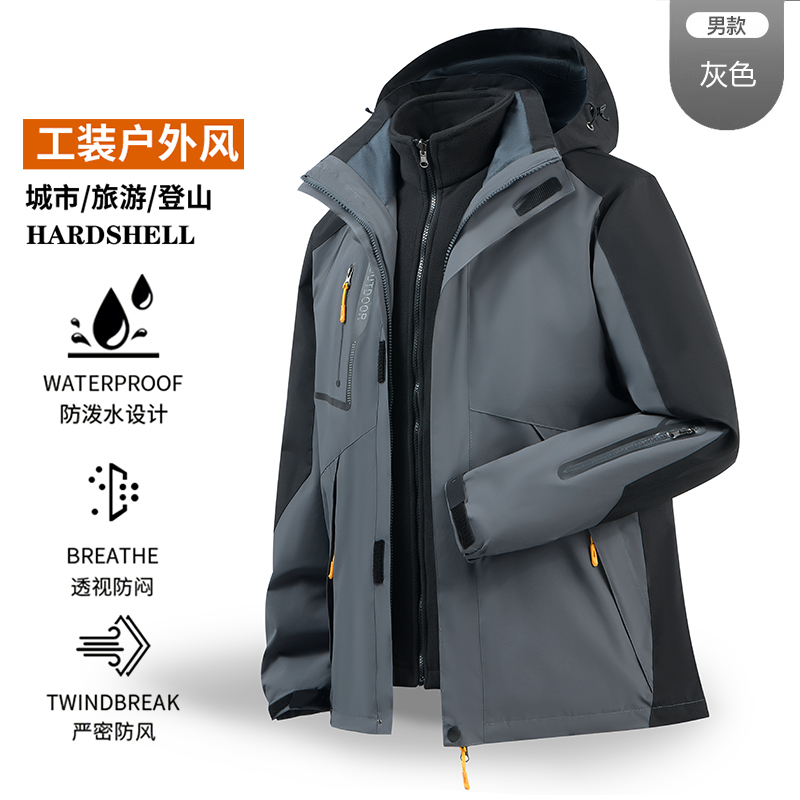 户外冲锋衣外套装男冬季三合一可拆卸上衣加绒加厚防风防水三件套