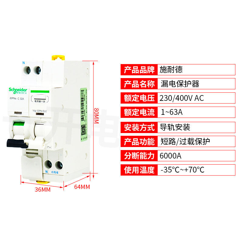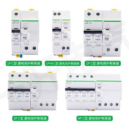 施耐德IC65N空开断路器带漏电保护器C型1P+N/2P/3P/4P A9家用总闸