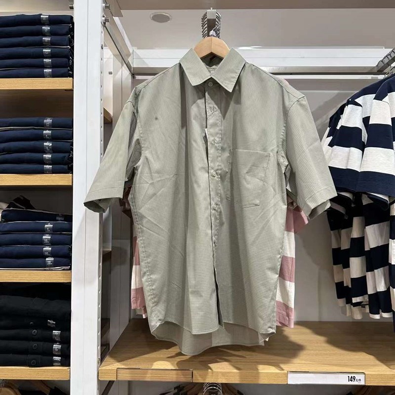 小蓉男装女装春夏季宽松格子衬衫5分袖短袖休闲衬衣467844/467845