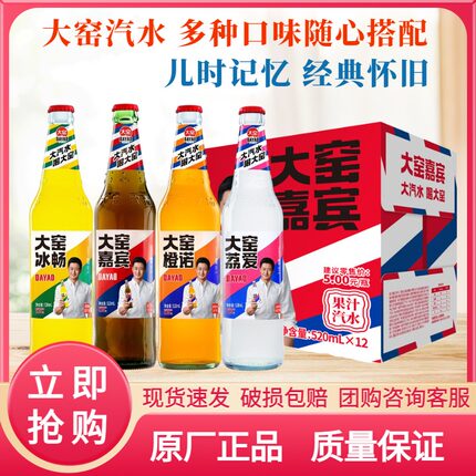 内蒙古大窑嘉宾原味橙味荔枝味汽水520ml玻璃瓶网红碳酸怀旧饮料