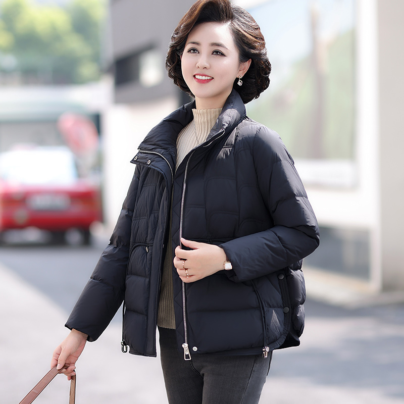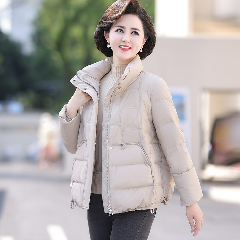 小个子妈妈冬装洋气短款羽绒服中年女宽松大码外套中老年加厚棉袄