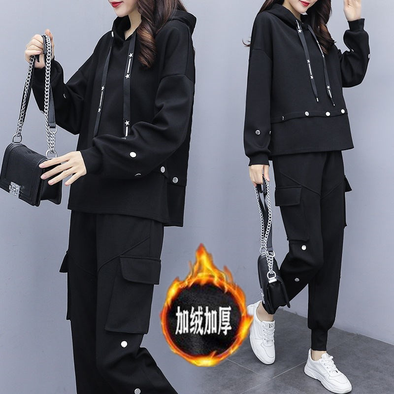 大码女装春秋冬季新款套装胖mm显瘦遮肉休闲时尚洋气减龄卫衣秋装