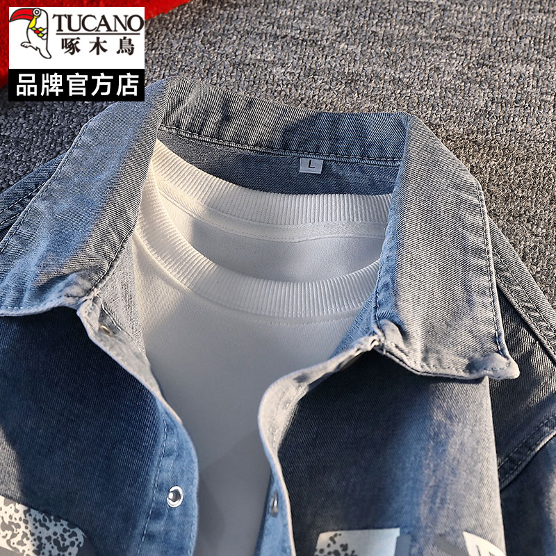 啄木鸟牛仔外套男2025新款春秋季潮流美式复古宽松休闲痞帅夹克潮
