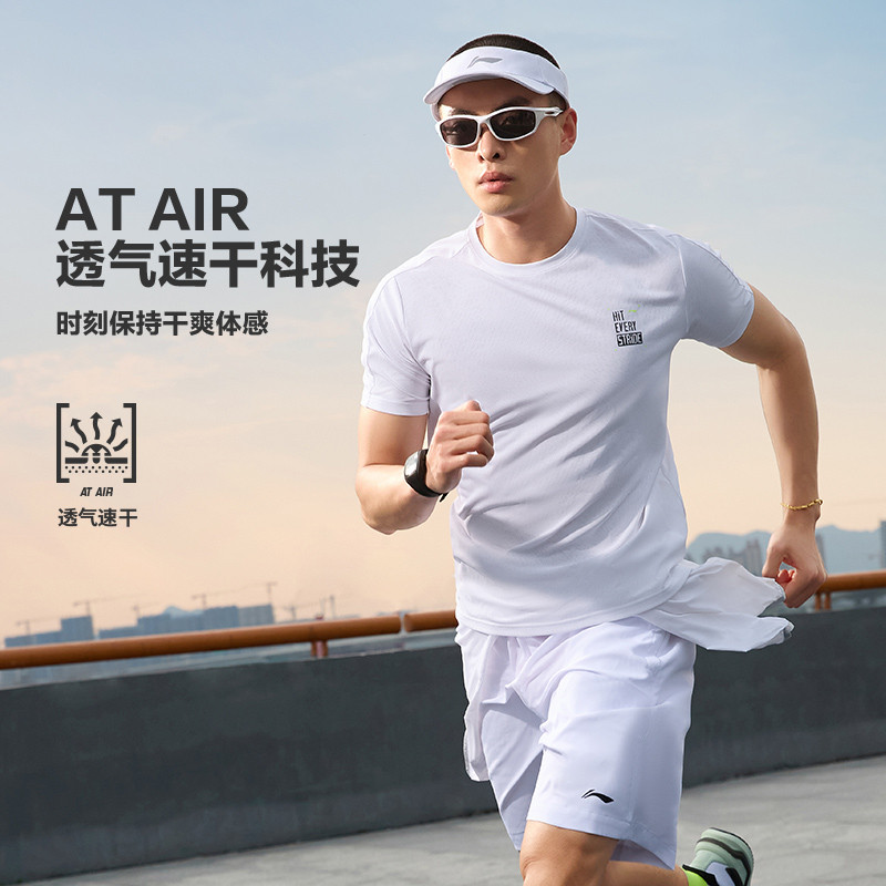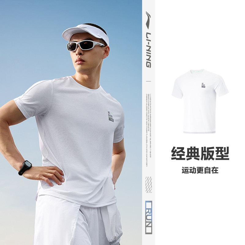 李宁短袖夏男子跑训系列时尚透气常规圆领短袖T恤衫ATSU191-B品