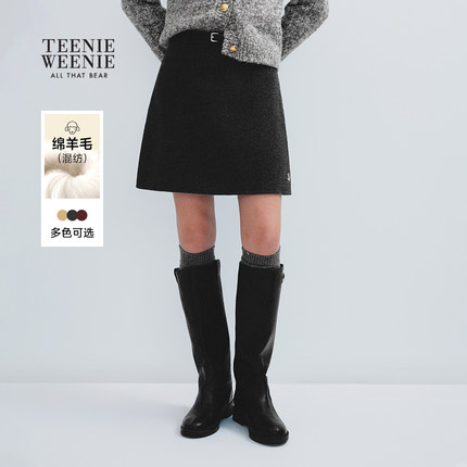 TeenieWeenie小熊女装半身裙冬季气质优雅简约风绵羊毛A字裙短裙