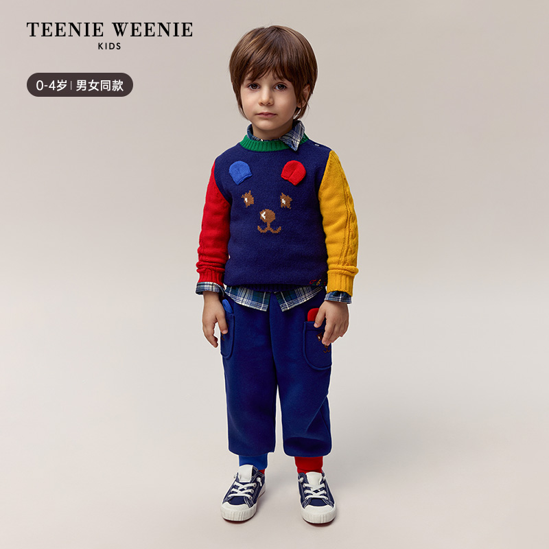 TeenieWeenie Kids小熊童装秋冬款男女宝宝立体口袋加绒束脚卫裤
