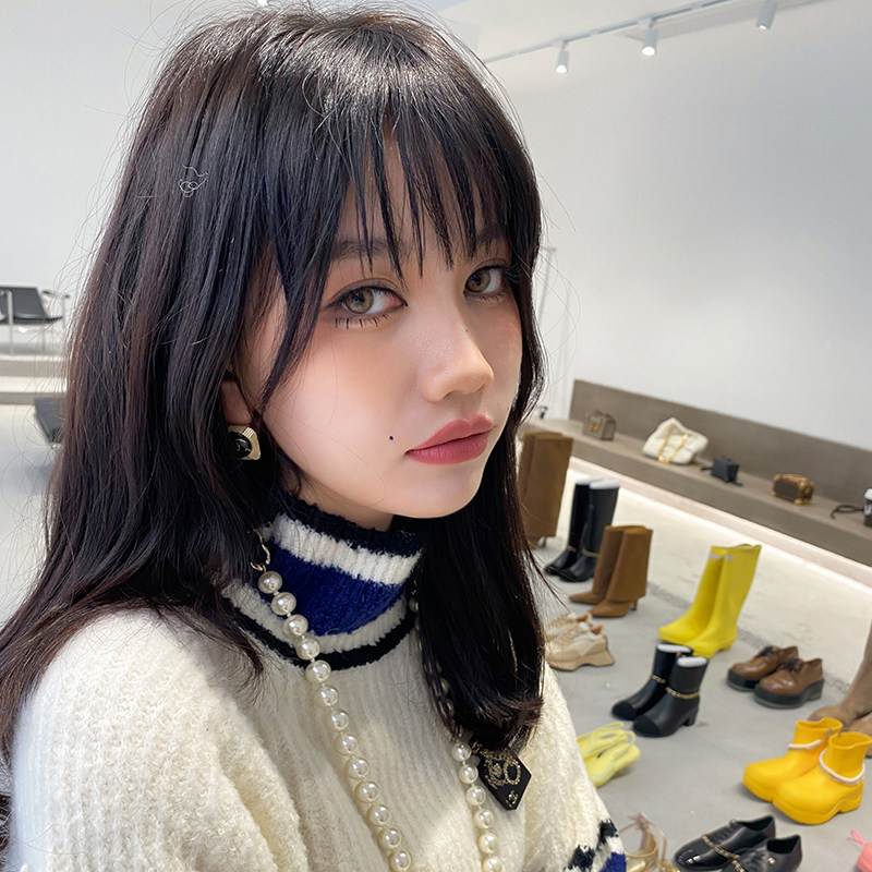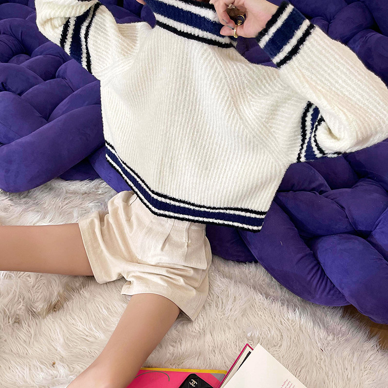 CAN秋季新款 慵懒白色高领套头毛衣女高级感撞色上衣