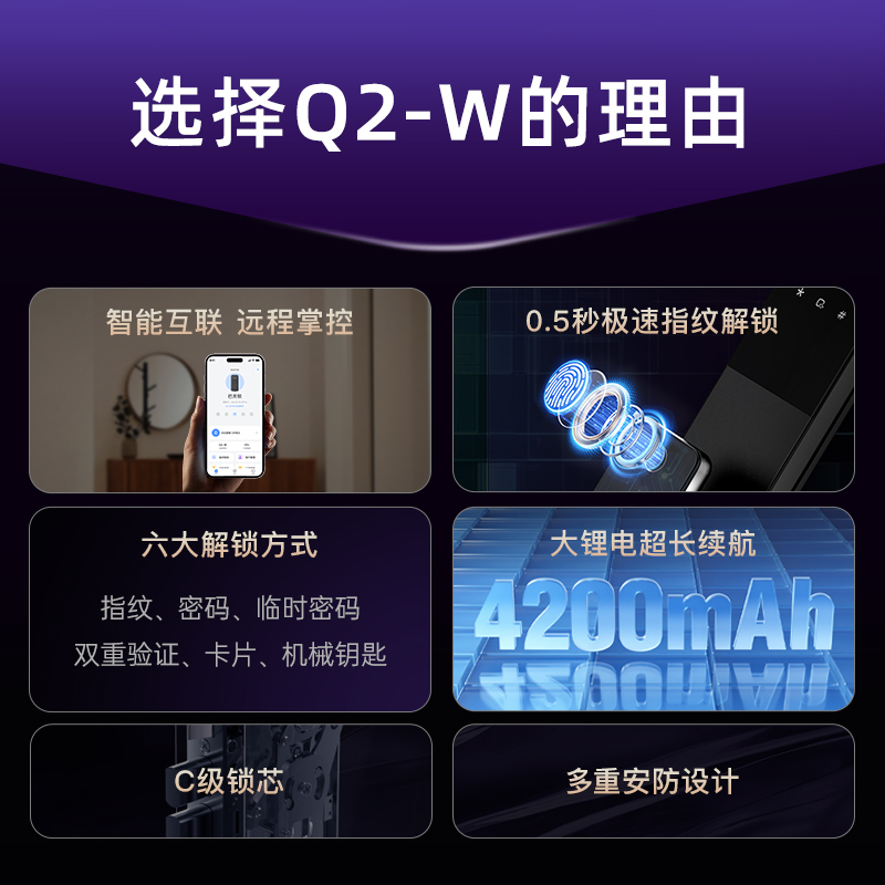 凯迪仕Q2W密码指纹门卡智能门锁家用门锁电子锁防盗门入户门