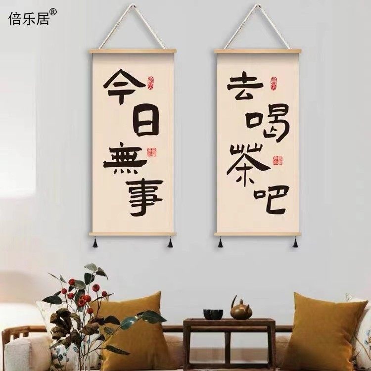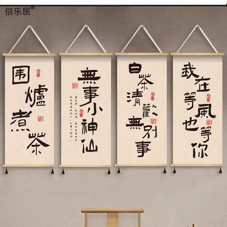 围炉煮茶室馆背景挂画书法打卡装饰画新中式画书法文字壁画民宿画