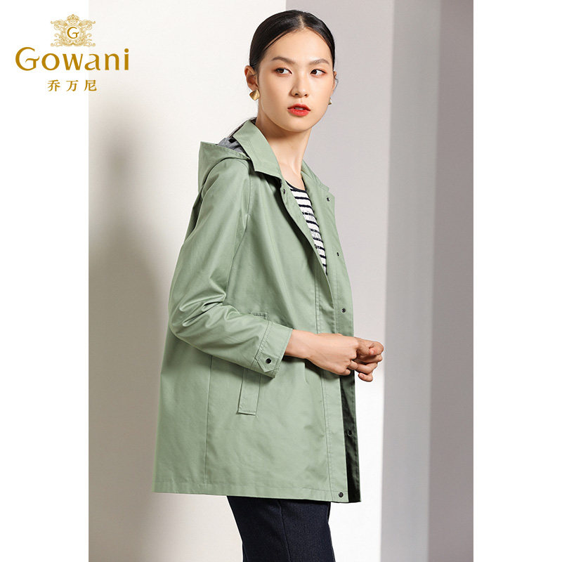 乔万尼秋装女商场新款宽松直筒气质简约欧洲站连帽风衣外套女短款