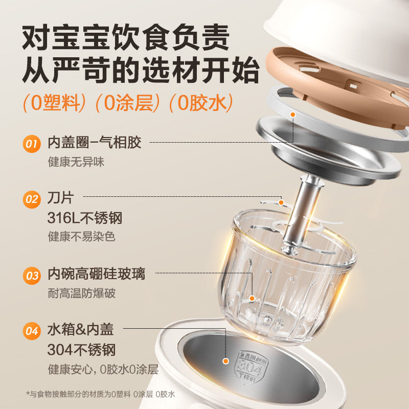 苏泊尔分月龄辅食机全钢刀头婴儿宝宝料理机蒸煮一体多功能打米糊