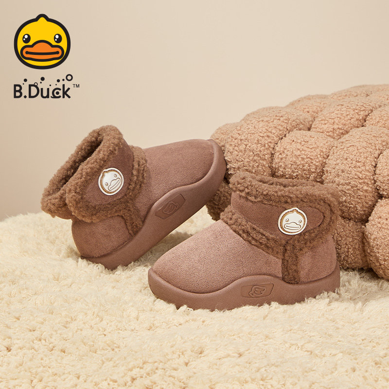 bduck小黄鸭童鞋男童棉鞋冬季新款加绒小童短靴保暖女宝宝雪地靴