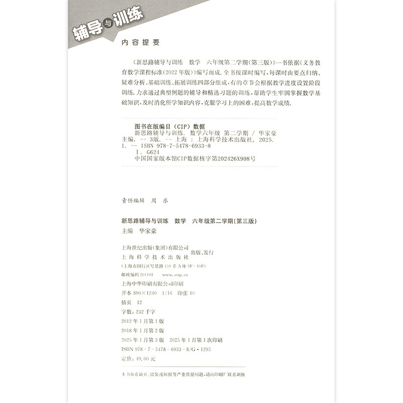 新思路辅导与训练六年级下数学 新思路六年级下 初中数学教材教辅6下第二学期 上海科学技术出版社 新思路六年级下数学