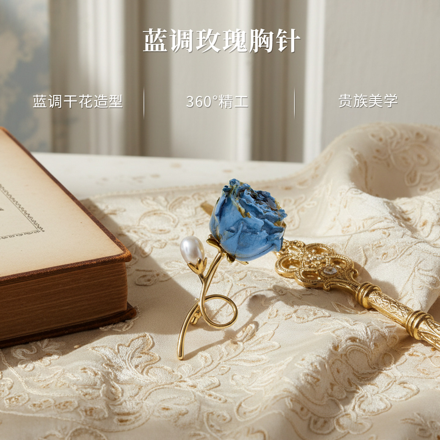 Eternelle蓝调玫瑰胸针艺术感秋冬配饰领针高级感胸花女圣诞礼物