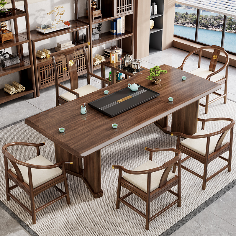 乌金木茶桌椅组合新中式办公一体实木大板茶台办公家用干湿泡茶桌