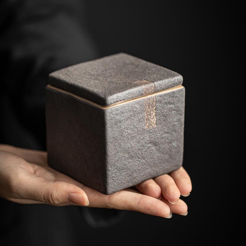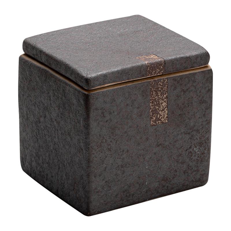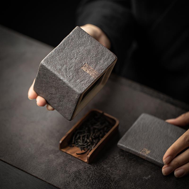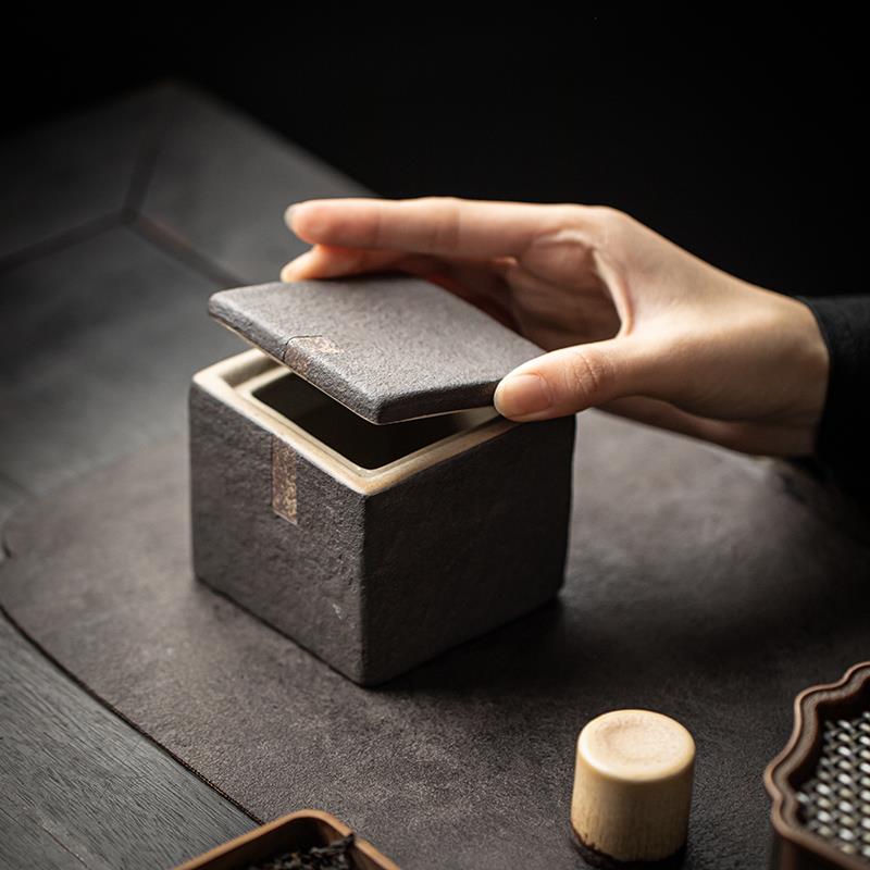 粗陶方形茶叶罐家用非密封醒茶罐复古茶盒储存罐陶瓷简约小号茶仓
