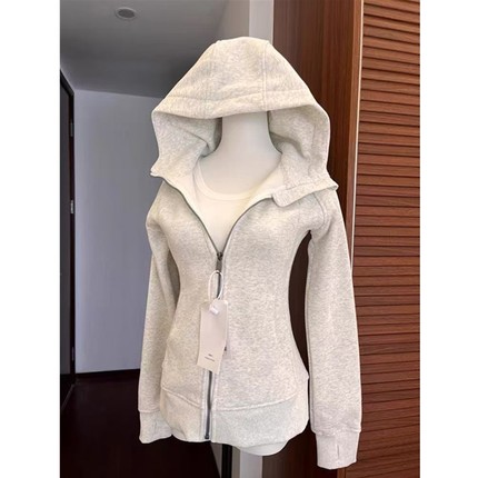 修身外套女款正肩卫衣2025新款秋冬季加绒连帽衫收腰紧身短款上衣