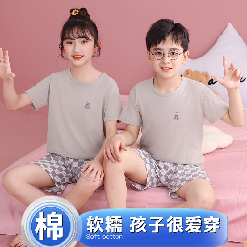 儿童睡衣套装春夏季纯棉男童家居服薄款女童夏装小中大童短袖短裤