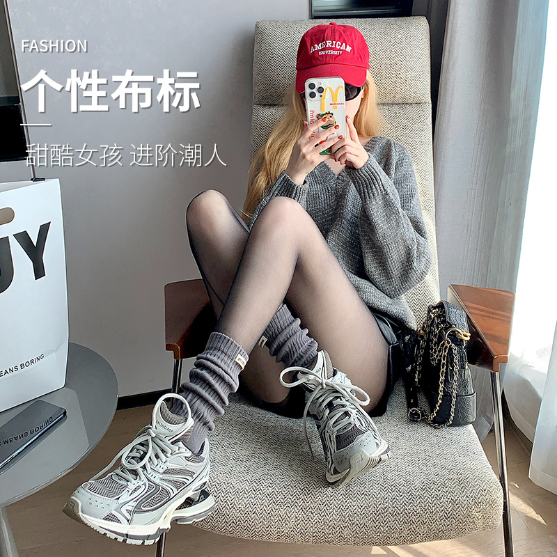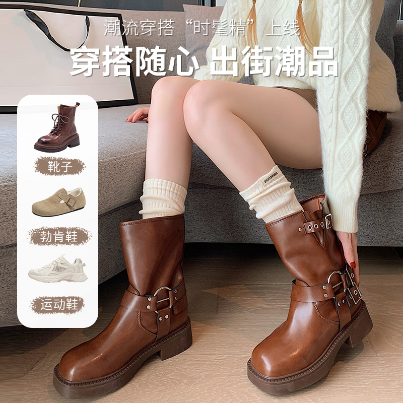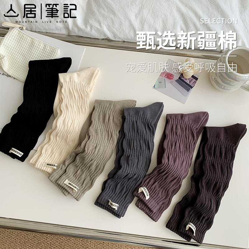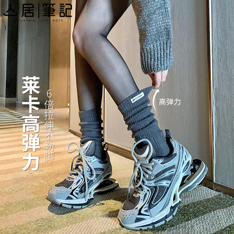 袜子女中筒春秋款棉袜高腰外穿潮网红款无骨秋天款靴子长筒堆堆袜