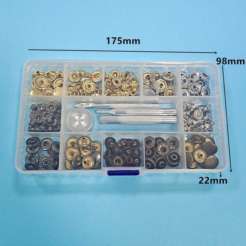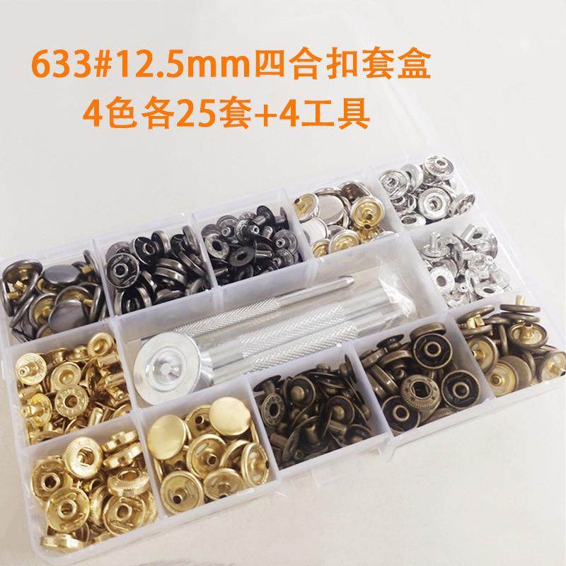 供跨境633#12.5mm金属四合扣4色各25套+4件工具金属纽扣暗扣