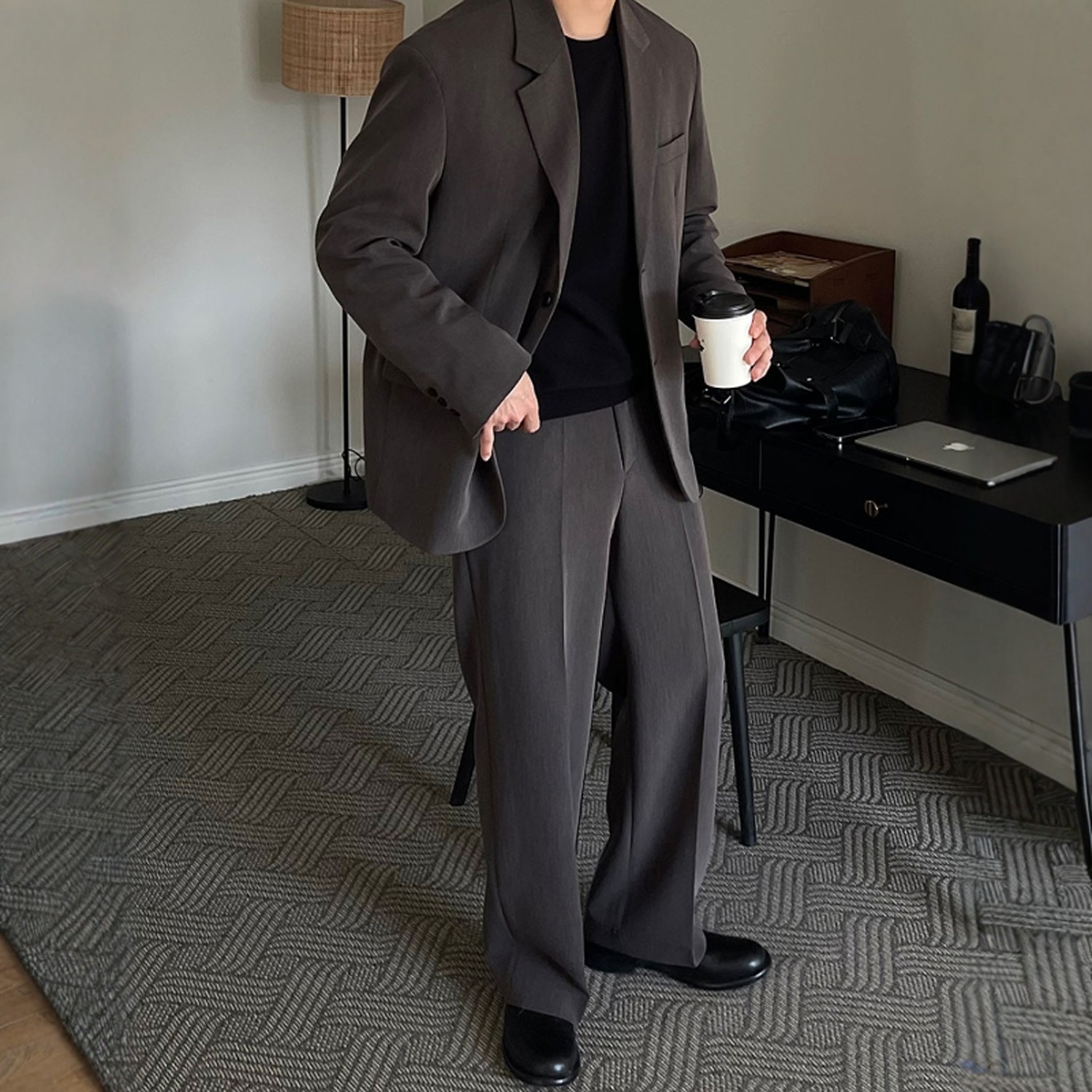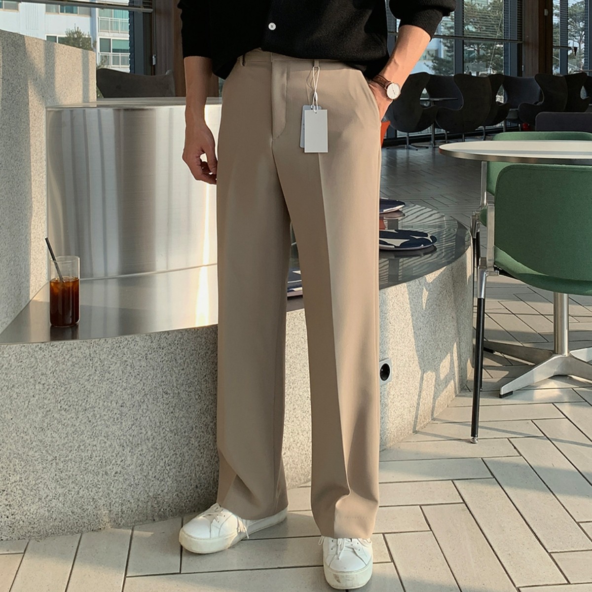 韩国男装代购直播DEEF高档百货级春夏半松紧显瘦宽松直筒休闲西裤