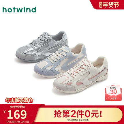 热风银色慢跑鞋女鞋2025年冬季新款百搭松糕底休闲鞋运动户外鞋子