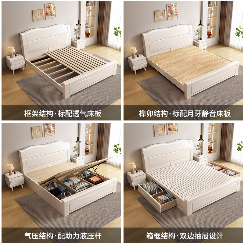 尚品宅配榫卯实木床白色现代简约奶油风1.8米加厚储物双人床主卧