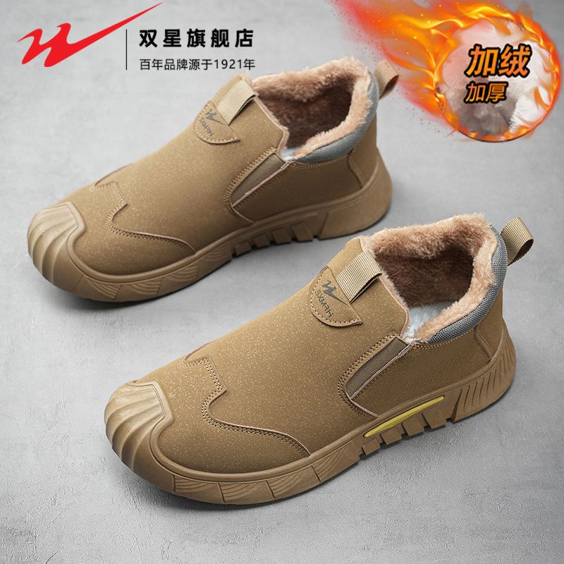 双星老北京布鞋男鞋冬季加绒保暖二棉爸爸鞋运动一脚蹬工作劳保鞋