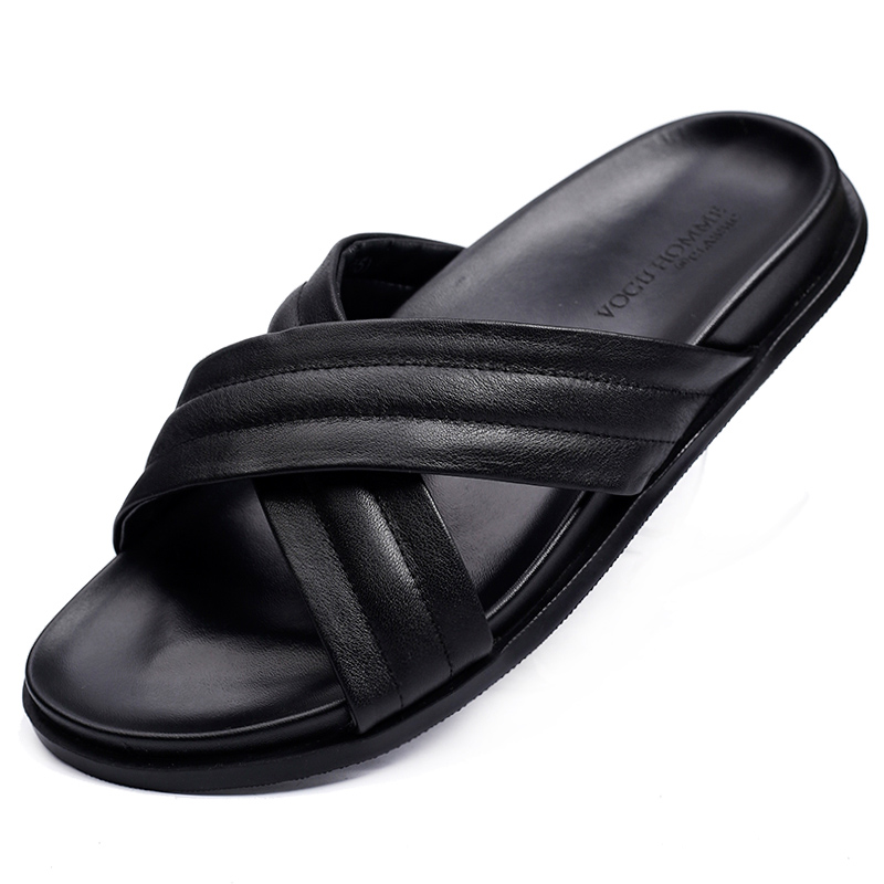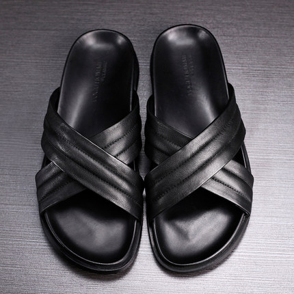 夏季交叉潮流露趾牛皮防滑凉拖鞋