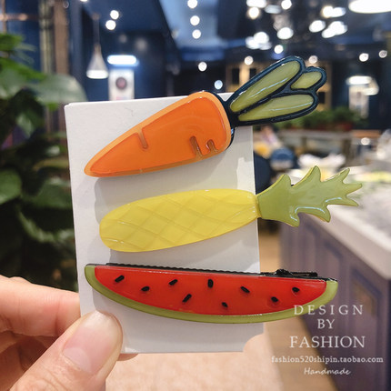 韩国水果发饰头饰西瓜刘海夹边夹菠萝洋气发夹卡子洋气饰品韩版