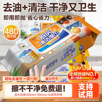 贝拉厨房湿巾湿纸巾威猛企鹅厨房湿巾去污去油家用加大加厚清洁