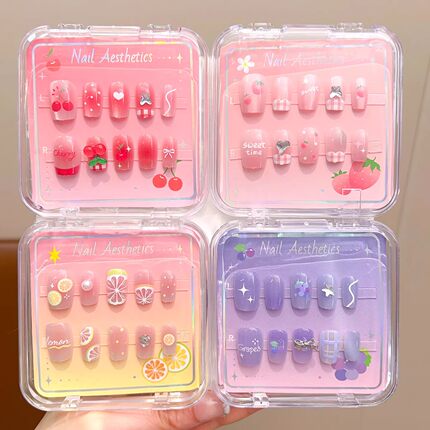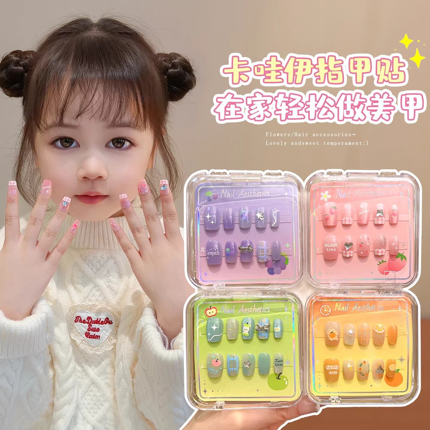 儿童穿戴甲水果荔枝女童2026新款穿戴甲片10岁8岁5岁6岁高级感果冻胶儿童女孩新年美甲指甲贴纸
