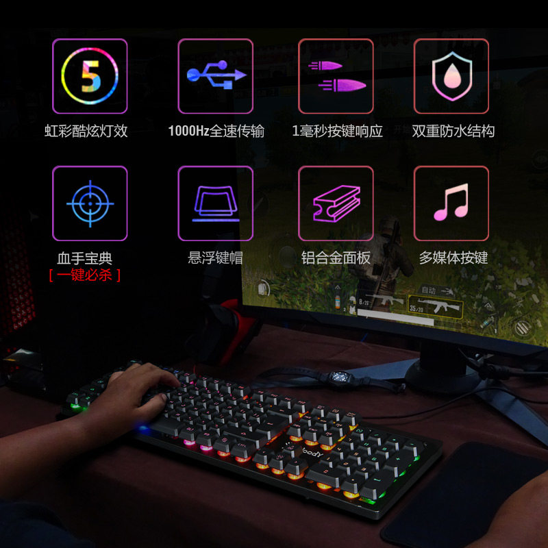 血手幽灵B160NRGB发光游戏键盘