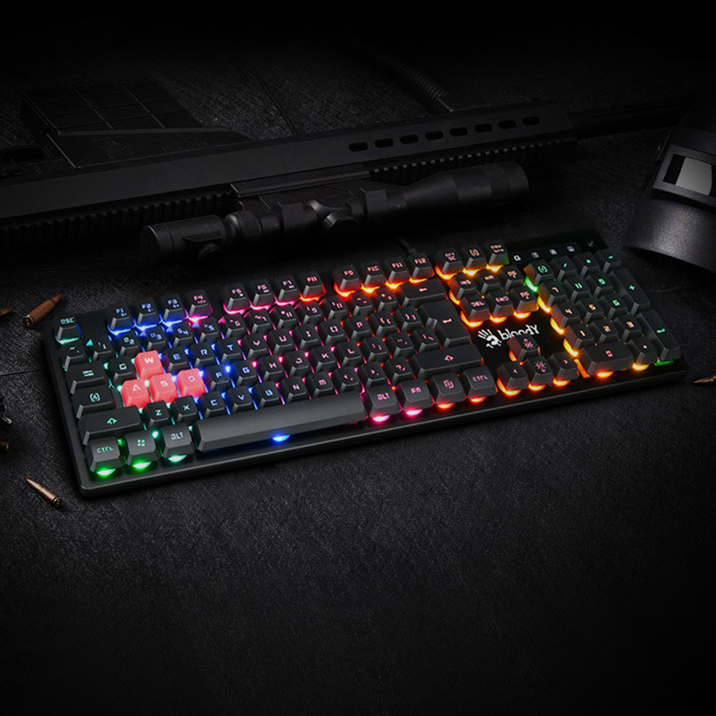 双飞燕血手幽灵B160N游戏键盘RGB发光青轴机械手感电竞防冲防水膜