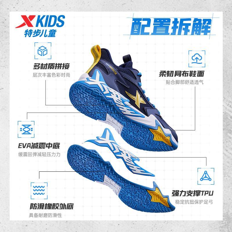 特步童鞋儿童秋季新款男童运动篮球鞋中大童软底舒适运动鞋休闲鞋