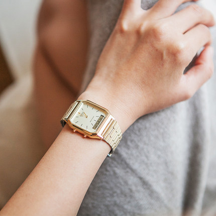 Casio卡西欧复古手表男女中性钢带学生网红小方块表AQ-230GA-9D7D