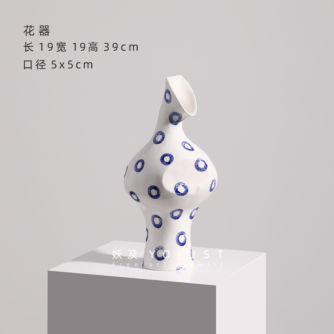 妖及 现代简约白色陶瓷圆点艺术花器 样板间售楼处酒店民宿装饰品